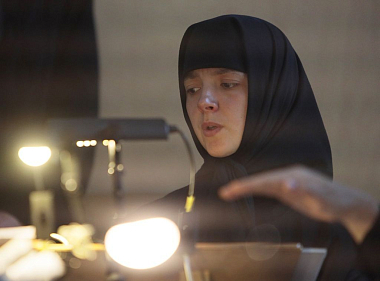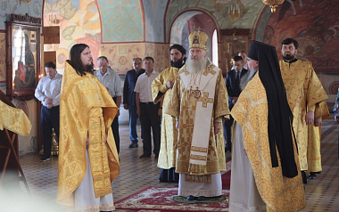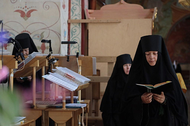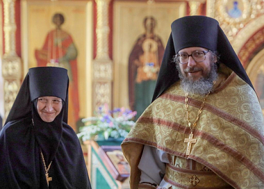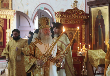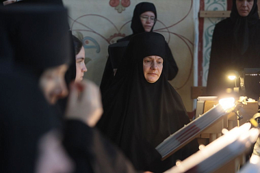 Высокопреосвященнейшему Феогносту сослужили иеромонах Даниил (Константинов), исполняющий обязанности настоятеля Заиконоспасского ставропигиального мужского монастыря и клирики этой обители. За Литургией молились настоятельница Александро-Невского монастыря игумения Антония (Минина) с сестрами, а также сестры Никольского Шостьенского ставропигиального женского монастыря во главе со своей настоятельницей, игуменией Неониллой (Фроловой). По окончании богослужения владыка Феогност отслужил литию по архимандриту Петру (Афанасьеву, † 2016), духовнику обители, погребенному в южном приделе храма, и обратился к молящимся с архипастырской проповедью.