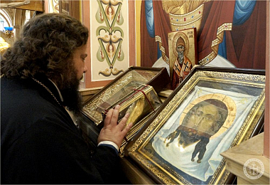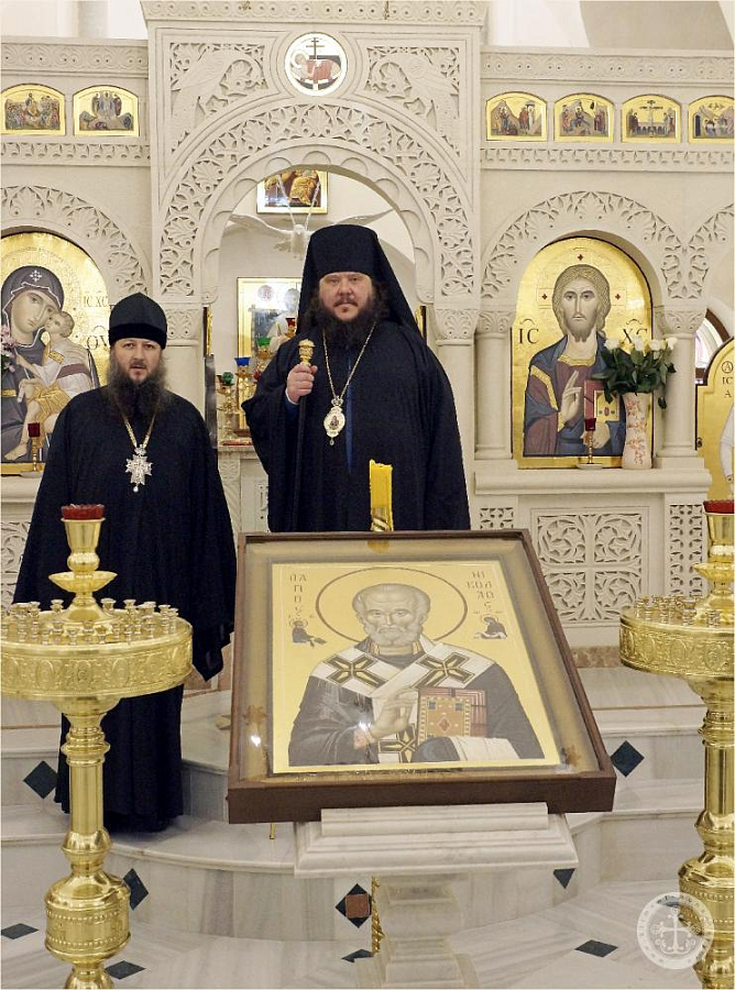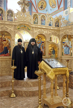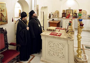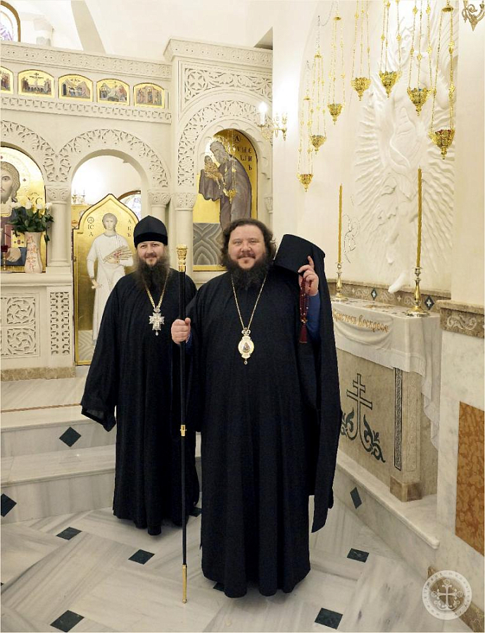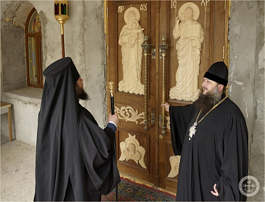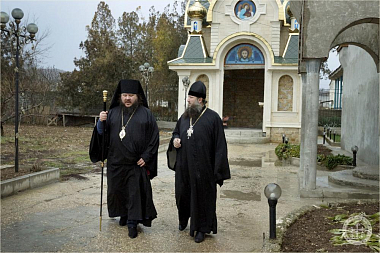 Преосвященного владыку в портале надвратного храма встретил наместник монастыря игумен Варнава (Шкурдода). Отец наместник сопроводил епископа Бахчисарайского Каллиника для поклонения святыням обители, рассказал о храмоздательстве и благоукрашении монастыря, после чего в трапезной было поставлено чаепитие и угощения.