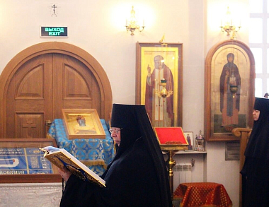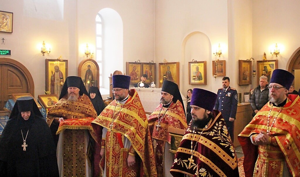 По окончании Божественной литургии Преосвященный Сергий обратился к молящимся с архипастырским словом, поздравил игумению Ангелину с сестрами обители, духовенство и прихожан с днем памяти великомученика Феодора Стратилата.
