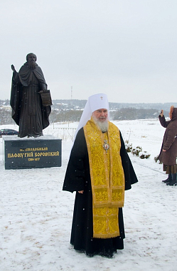 11 февраля 2018 года митрополит Калужский и Боровский Климент совершил освящение памятника преподобному Пафнутию Боровскому, установленного на территории подворья Свято-Пафнутьева Боровского монастыря у храма в честь Покрова Пресвятой Богородицы г. Боровска.