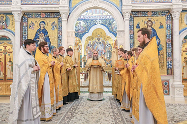 В Троицком соборе обители, где постоянно пребывает рака с мощами преподобного Серафима Саровского, глава Нижегородской митрополии совершил молебен с акафистом святому, а далее в Благовещенском соборе монастыря – Божественную литургию.