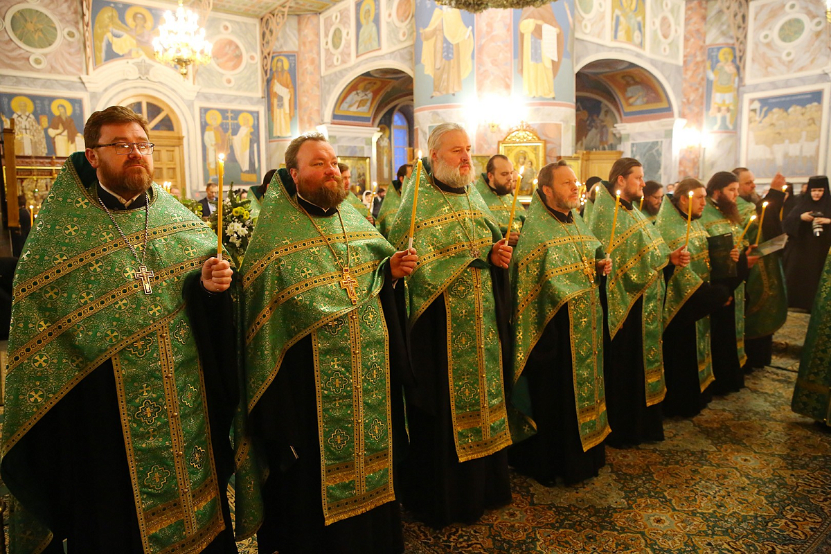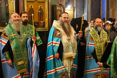 Его Высокопреосвященству сослужили митрополит Валентин (Мищук), митрополит Йошкар-Олинский и Марийский Иоанн, митрополит Иваново-Вознесенский и Вичугский Иосиф, митрополит Ставропольский и Невинномысский Кирилл, епископ Краснослободский и Темниковский Климент, епископ Ардатовский и Атяшевский Вениамин, викарий Нижегородской епархии епископ Дальнеконстантиновский Филарет, епископ Выксунский и Павловский Варнава, епископ Альметьевский и Бугульминский Мефодий, епископ Лысковский и Лукояновский Силуан, а также секретарь Нижегородского епархиального управления протоиерей Сергий Матвеев, благочинные округов и другие клирики Нижегородской епархии.