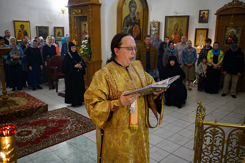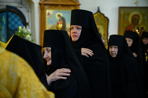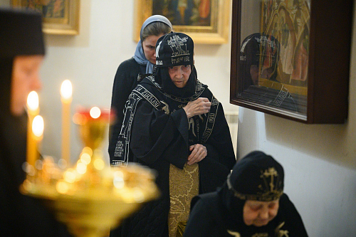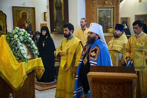 По окончании Литургии игумения Татиана поприветствовала Владыку Матфея и пожелала ему помощи Божией в несении Архипастырского служения.