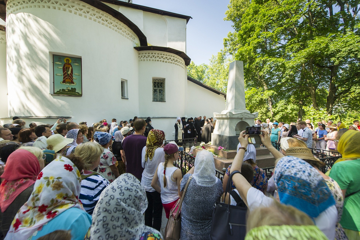 За литией молились губернатор Псковской области Михаил Ведерников, советник Президента РФ по вопросам культуры Владимир Толстой, гости праздника, студенты Псковского государственного университета, учащиеся школ Псковской области и местные жители.
