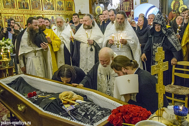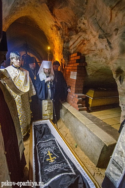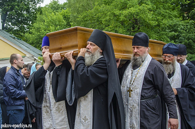По окончании отпевания гроб с телом схиархимандрита Тихона был перевезен в Свято-Успенский Псково-Печерский монастырь. В обители псковский митрополит совершил чин погребения и заупокойную литию по новопреставленному старцу.