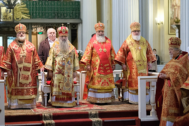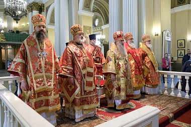 Его Высокопреосвященству сослужили епископ Назарий с братией обители в священном сане, епископ Тихвинский и Лодейнопольский Мстислав, епископ Армавирский и Лабинский Игнатий, епископ Сарапульский и Можгинский Антоний, а также секретарь Епархиального управления протоиерей Сергий Куксевич и другие священнослужители.