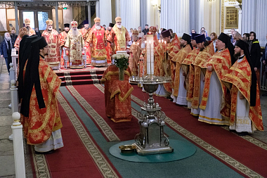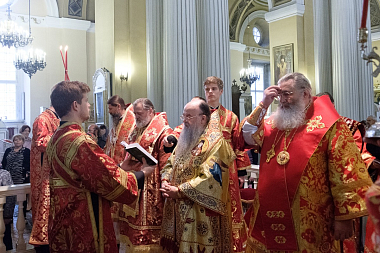 За богослужением молились настоятельницы обителей Санкт-Петербургской епархии: Константино-Еленинского женского монастыря – игумения Илариона (Феоктистова) и Староладожского Успенского монастыря – игумения Ангелина (Васильева).