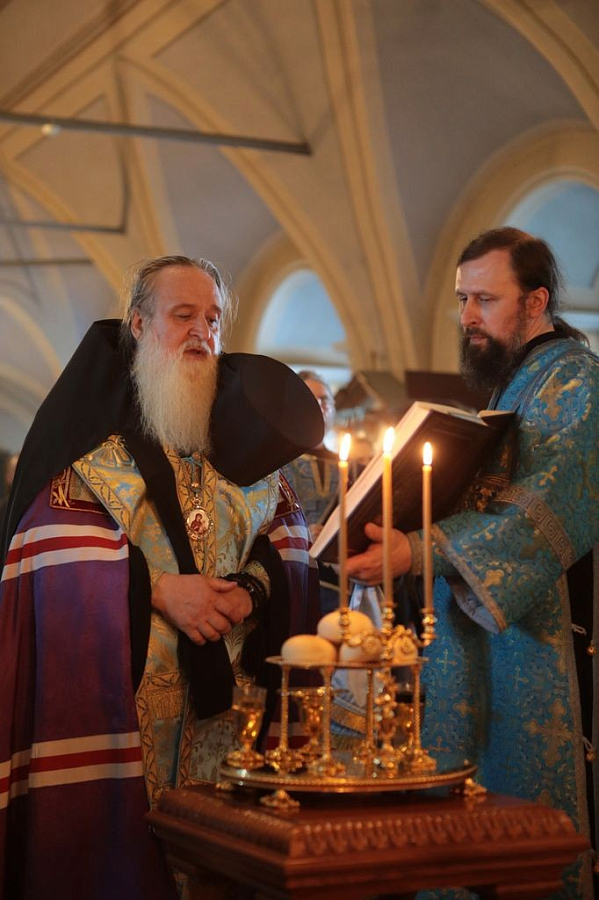 После сугубой ектении владыка митрополит вознес молитву, чтомую во время распространения вредоносного поветрия. Было совершено молитвенное поминовение болящих священнослужителей и мирян Русской Православной Церкви.