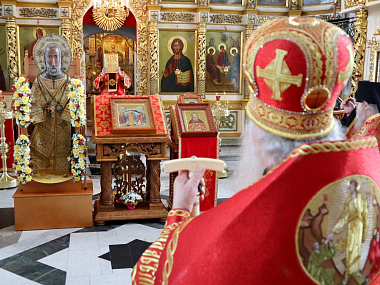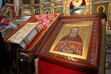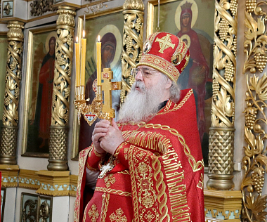 После молебна священномученику Димитрию отец наместник поздравил богомольцев с праздником, и обратился к собравшимся с пастырским словом.