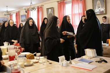 К старшим сестрам примкнула и воспитанница Маша, окончившая в этом году 9 классов в Тверской епархиальной православной средней общеобразовательной школе во имя святителя Тихона Задонского. Обычно завершение школьного учебного года в монастыре проходит весьма празднично: приглашаются учителя епархиальной школы и ее директор протоиерей Леонид Водолазский, собираются все монастырские преподаватели, служится соборно благодарственный молебен, девочки готовят концерт, демонстрируются их творческие достижения за минувший год (традиционными стали рисованные фильмы о жизни Детского центра или о подвижниках благочестия и святых). Сейчас эти торжества прошли только в монастырском кругу.