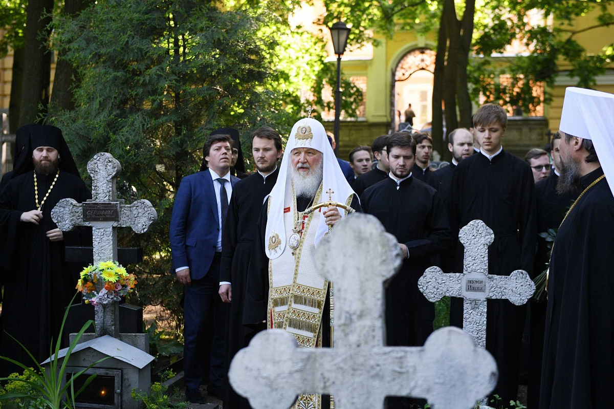 Святейший Патриарх также посетил места погребения и возложил цветы на могилы ряда преподавателей Санкт-Петербургских духовных школ: Владимира Иосифовича Бронского (1933–1996), протодиакона Андрея Чижова (1944–1999), протоиерея Игоря Мазура (1940–2016), Ивана Милетовича Ружанского (1928–2012), заслуженного профессора СПбДА протоиерея Георгия Тельписа (1938–2012), профессора СПбДА архимандрита Ианнуария (Ивлиева; 1943–2017), Михаила Юхановича Садо (1934–2010).