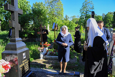 Посещение Никольского кладбища завершилось литией у места погребения Патриаршего архидиакона Андрея Мазура (1926–2018).