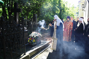 Святейший Владыка также молился возле могил митрополитов Антония (Мельникова) и Иоанна (Снычева).