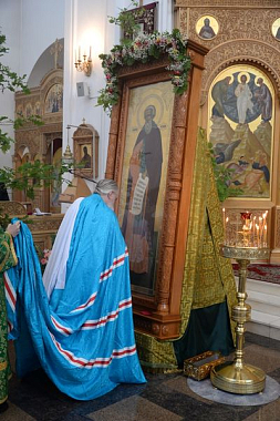 По окончании богослужения было совершено славление Божией Матери, в честь Чудотворной иконы Ее «Калужской» (икона была принесена в монастырь накануне) и преподобному Тихону Калужскому, чудотворцу.