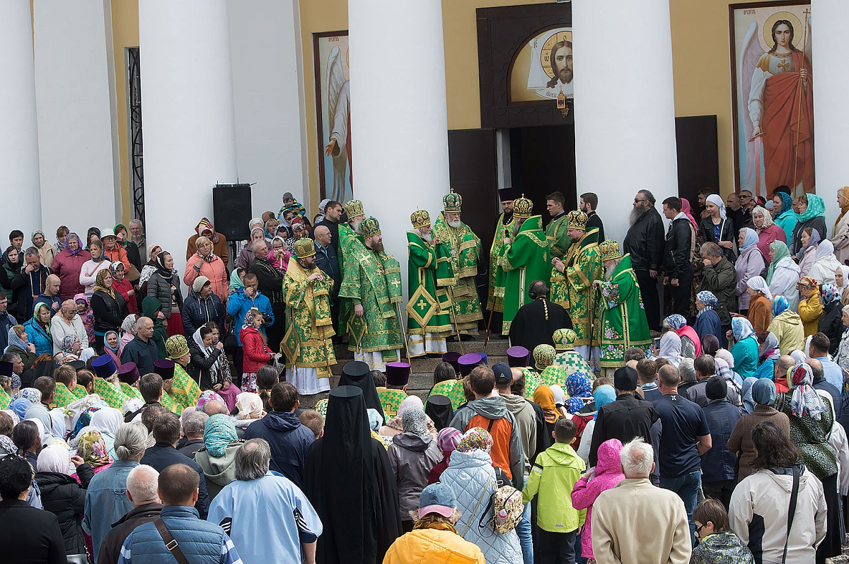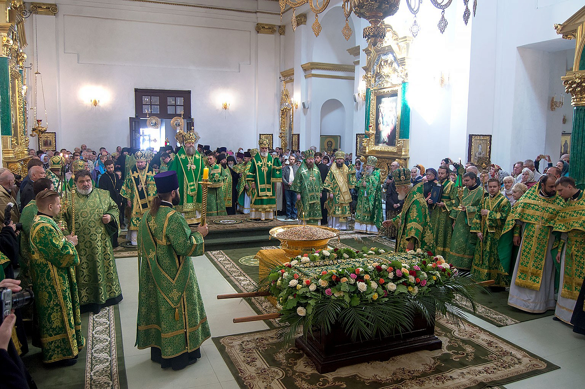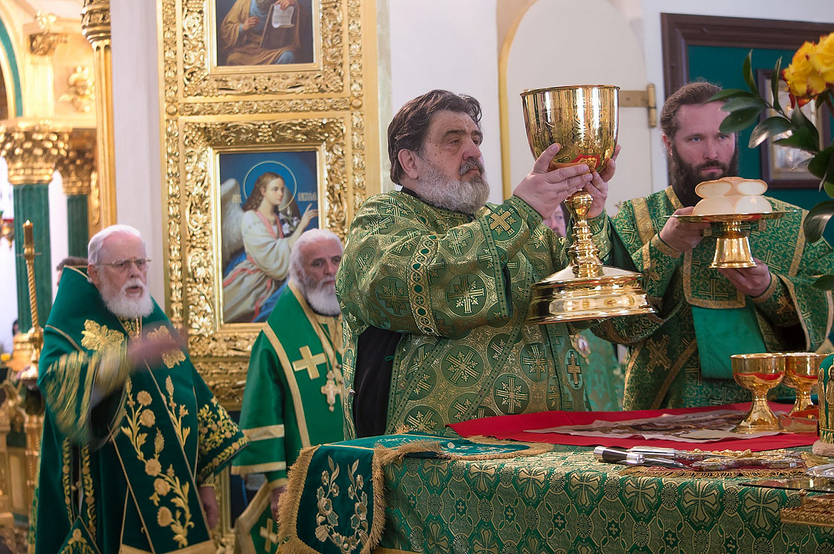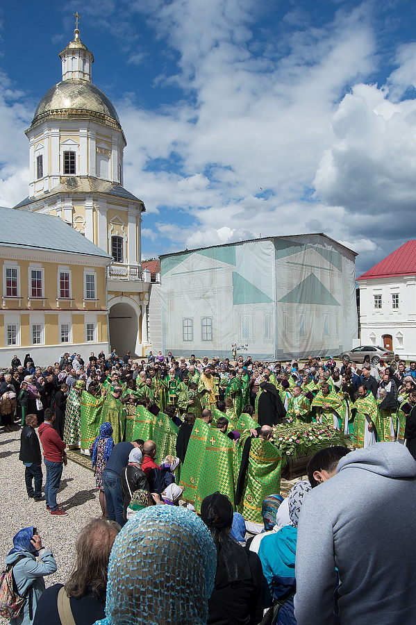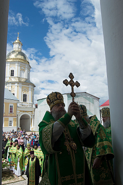 Его Высокопреосвященству сослужили митрополит Ростовский и Новочеркасский Меркурий, епископ Ржевский и Торопецкий Адриан, епископ Канский и Богучанский Филарет, епископ Бежецкий и Весьегонский Филарет, епископ Великолукский и Невельский Сергий, епископ Рославльский и Десногорский Мелетий, наместник монастыря архимандрит Аркадий (Губанов), братия монастыря в священном сане и прибывшее на праздник духовенство.