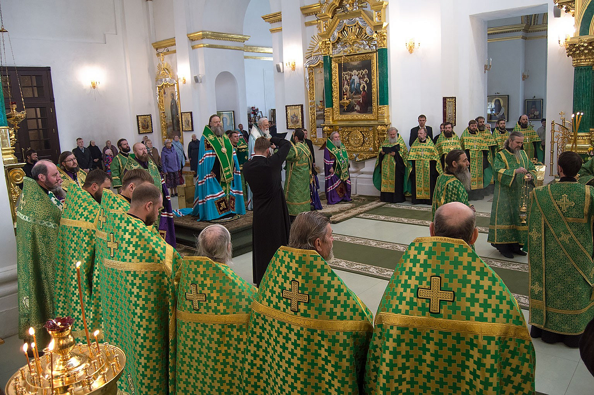 Торжественная встреча архипастырей в Богоявленском соборе монастыря предварила начало праздничной Божественной литургии, которую возглавил священноархимандрит обители митрополит Тверской и Кашинский Виктор.