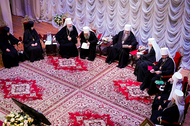 В начале заседания Его Высокопреосвященство владыка Георгий выступил с приветственным словом: «Сегодня по благословению нашего Предстоятеля – Патриарха Московского и всея Руси Кирилла мы проводим форум монашествующих Приволжского Федерального округа, в рамках которого обсуждаем вопросы монашеской жизни. Главным образом мы делимся опытом увековечивания памяти новомучеников и подвижников благочестия в наших епархиях. Благодарю всех собратьев-архипастырей, всех монашествующих, которые смогли прибыть сюда на нашу встречу, которая, по моему мнению, имеет большое значение как часть созидания духовной монашеской жизни. Мы имеем возможность сегодня обменяться мыслями и мнениями по вопросам, связанным с нашей основной темой, и выработать общие подходы к работе по увековечиванию памяти новомучеников и подвижников благочестия. Надеюсь, что наше общение будет плодотворным».