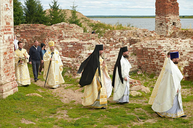 В праздничный день с частным визитом один из древнейших островных монастырей на Русском Севере посетил губернатор Вологодской области О.А. Кувшинников. Глава региона принял участие в торжественном богослужении, которое возглавил митрополит Савва.