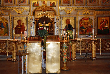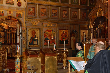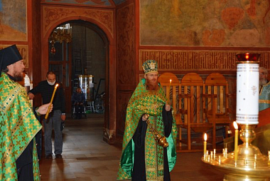 За Божественной литургией после сугубой ектении была вознесена молитва, чтомая во время распространения вредоносного поветрия, а на заупокойной ектении были помянуты предки преподобного Пафнутия – блаженные Мартин, Иоанн и Фотиния.