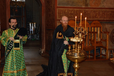 Этот год необычен для нас в том отношении, что праздник Пасхи пришелся на 6 апреля по старому стилю, как и в год кончины святого, в 1477 году. А умер он в четверг 4-й седмицы по Пасхе, то есть этот день совпадает с сегодняшним. По завещанию игумена, никто из мирян не смог прийти в этот день в обитель проститься с ним. Так получилось, что и в этом году мы празднуем одни, без паломников, что явилось для многих большой скорбью. Но мы верим, что нас не оставит преподобный, и даст утешение, и испросит нам милости от Господа».