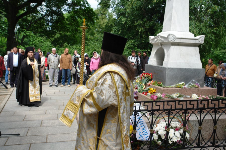 В этот день в обитель прибыло множество верующих почтить память Александра Сергеевича и возложить цветы на его могилу.