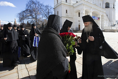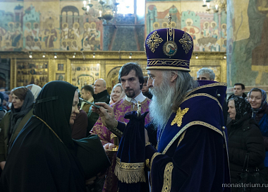 За Литургией молились: архиепископ Горноалтайский и Чемальский Каллистрат; заместитель председателя Синодального отдела по монастырям и монашеству, настоятельница Зачатьевского ставропигиального женского монастыря игумения Иулиания (Каледа) с сестрами; член коллегии СОММ, настоятельница Богородице-Рождественского ставропигиального женского монастыря игумения Викторина (Перминова) с сестрами; руководитель Правового управления Московской Патриархии, настоятельница Алексеевского ставропигиального женского монастыря игумения Ксения (Чернега); многочисленные гости и паломники.