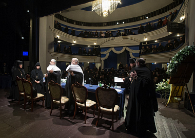 Затем митрополит Нижегородский и Арзамасский Георгий представил вниманию собравшихся документ «Духовное руководство монашествующими в монастырях», подготовленный Комиссией Межсоборного присутствия по вопросам организации жизни монастырей и монашествующих.