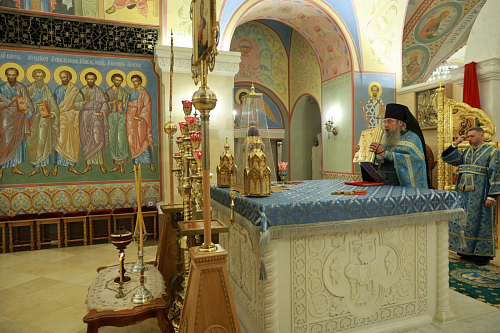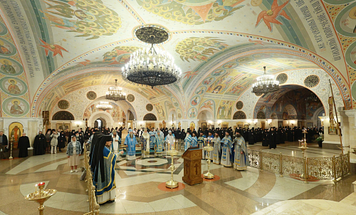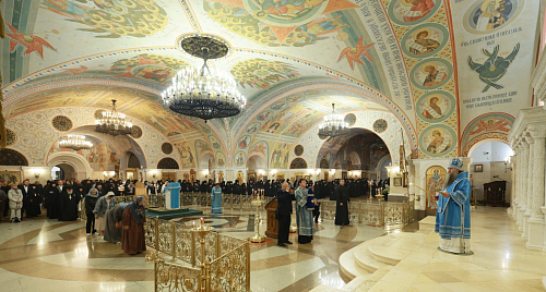Перед началом Собрания монашествующих председатель Синодального отдела по монастырям и монашеству возглавил Литургию в нижней Преображенской церкви Храма Христа Спасителя