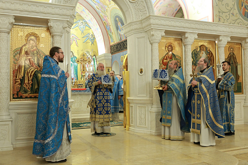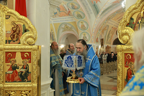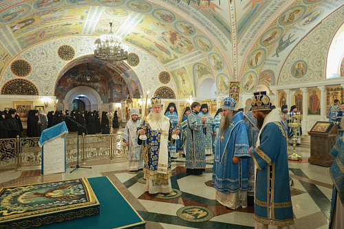 Богослужение совершили: председатель Синодального отдела по монастырям и монашеству, наместник Донского ставропигиального мужского монастыря г. Москвы митрополит Каширский Феогност; председатель Комиссии по организации жизни монастырей и монашества Межсоборного присутствия Русской Православной Церкви митрополит Нижегородский и Арзамасский Георгий; митрополит Саранский и Мордовский Зиновий; митрополит Волгоградский и Камышинский Феодор; епископ Ардатовский и Атяшевский Мелетий; столичное духовенство.