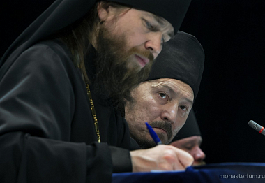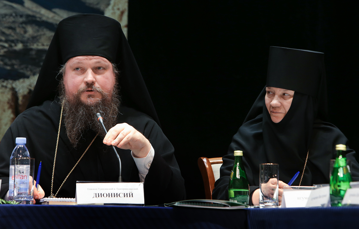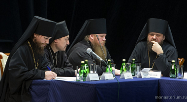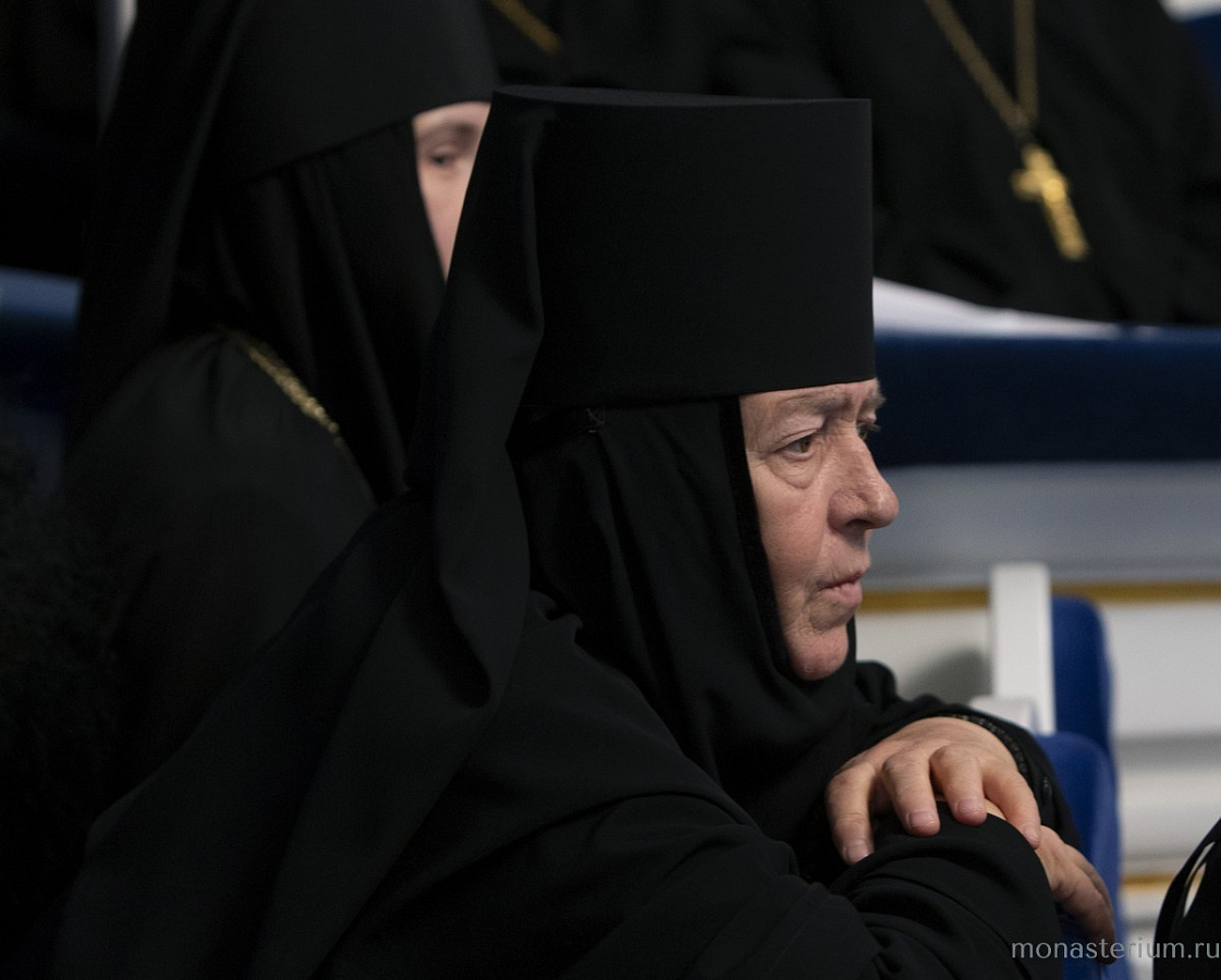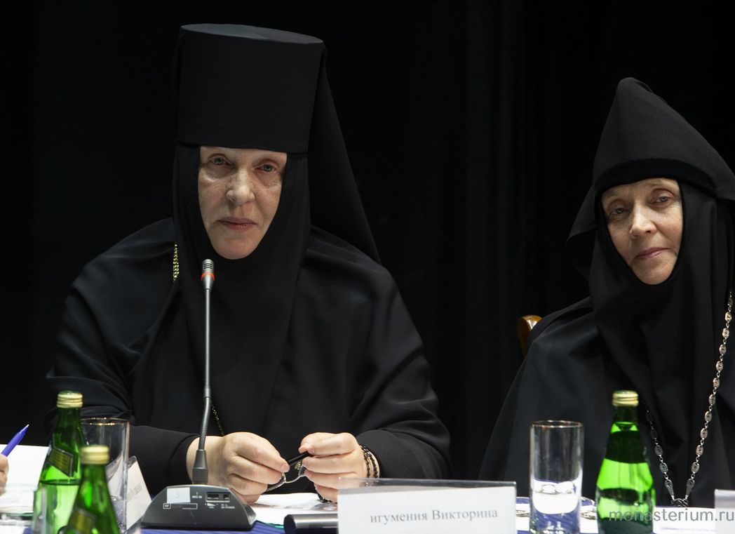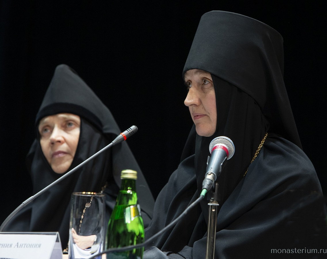 Затем митрополит Нижегородский и Арзамасский Георгий пригласил для участия в дискуссии за стол президиума игумена Варфоломея (Петрова), наместника Николо-Угрешского ставропигиального мужского монастыря, игумена Петра (Мажетова), настоятеля Свято-Косьминской мужской пустыни Екатеринбургской митрополии; игумена Исаакия (Иванова), настоятеля Иоанно-Богословского монастыря Рязанской епархии; игумению Сергию (Конкову), настоятельницу Свято-Троицкого Серафимо-Дивеевского женского монастыря; игумению Евдокию (Левшук), настоятельницу Спасо-Евфросиниевского ставропигиального женского монастыря в Полоцке (Белорусский экзархат), игумению Антонию (Минину), настоятельницу Свято-Троицкого Александро-Невского ставропигиального женского монастыря в с. Акатове.