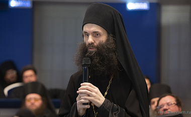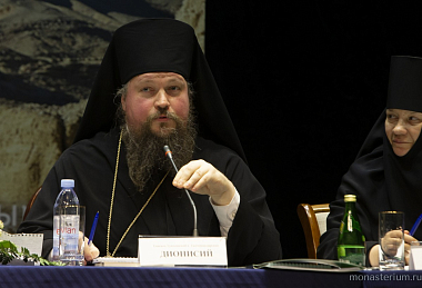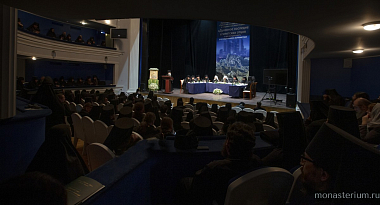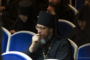 Доклад епископа Домодедовского Иоанна, наместника Новоспасского ставропигиального мужского монастыря, «"Одно сердце и одна душа". Принципы общежительного монашества в египетских киновиях и их применение в современных монастырях» прочел насельник Новоспасской обители игумен Иаков (Тупиков).