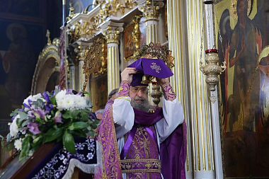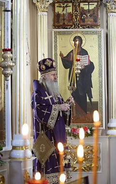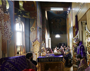 Утром этого дня в Георгиевском соборе монастыря была совершена Литургия Преждеосвященных Даров. Богослужение возглавил архиепископ Каширский Феогност, председатель Синодального отдела по монастырям и монашеству.