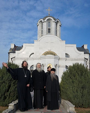 Его Высокопреосвященству сослужили архиепископ Пятигорский и Черкесский Феофилакт, архиепископ Махачкалинский и Грозненский Варлаам, епископ Георгиевский и Прасковейский Гедеон, епископ Солнечногорский Алексий, наместник Данилова ставропигиального мужского монастыря Москвы.