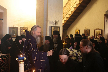 В этот день Председатель Синодального отдела по монастырям и монашеству архиепископ Сергиево-Посадский Феогност совершил богослужение в Богородице-Рождественской обители.