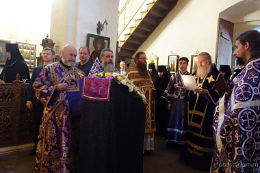 В этот день председатель Синодального отдела по монастырям и монашеству архиепископ Сергиево-Посадский Феогност совершил Литургию Преждеосвященных Даров.