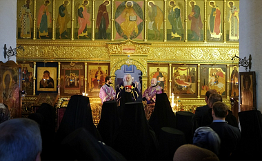 Его Высокопреосвященству сослужили заместитель председателя СОММ архимандрит Стефан (Тараканов), настоятель Свято-Преображенского скита Данилова ставропигиального мужского монастыря игумен Кронид (Карев) и духовенство обители.