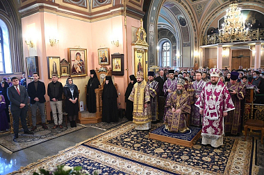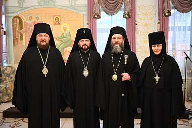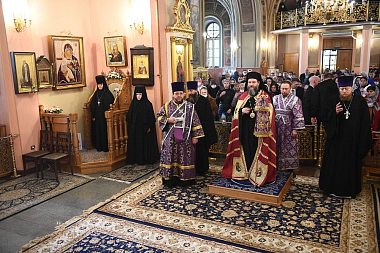 По прибытии в обитель Преосвященные архипастыри поклонились честным мощам блаженной Матроны Московской, почивающим в Покровском храме.