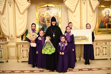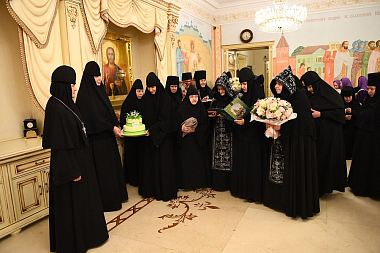 В завершение праздника насельницы Покровской обители и всех ее подворий тепло поздравили матушку игумению и преподнесли ей свои подарки.