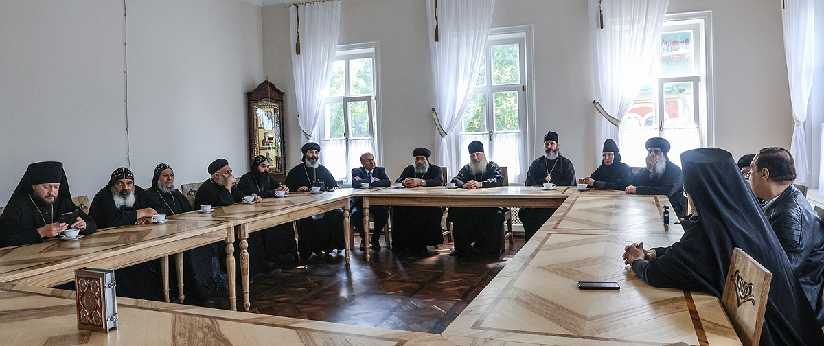 Гостей из Египта сопровождали наместник Высоко-Петровского ставропигиального мужского монастыря Москвы епископ Луховицкий Евфимий, сотрудники отдела Внешних церковных связей. Также на встрече присутствовала настоятельница ставропигиального женского монастыря – Марфо-Мариинской обители милосердия игумения Елисавета (Позднякова).