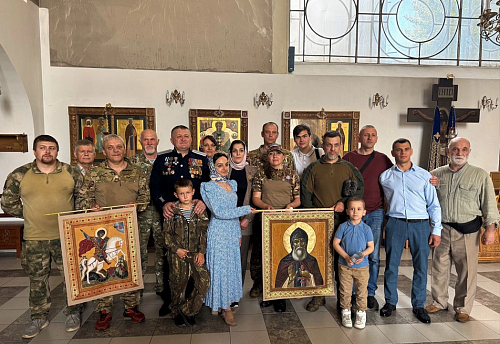 Командир диверсионно-разведывательной группы, куратор волонтерского движения «Путь победе», есаул батальона имени Цесаревича Алексия Андрей Альхимович (позывной «Феникс») вручил игумену Иосифу орденский знак Императора Николая II за вклад и помощь подразделению. Памятными медалями были награждены руководитель Иконописной мастерской А.В. Шешина, а также бойцы военных подразделений.