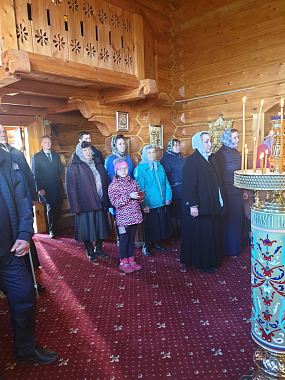 Его Преосвященство в сослужении настоятеля подворья иеромонаха Сергия (Филиппова) и насельника иеродиакона Арсения (Гуляева) совершил в данном храме великую вечерню и чтение акафиста иконе Божией Матери «Неувядаемый Цвет» перед храмовым образом.