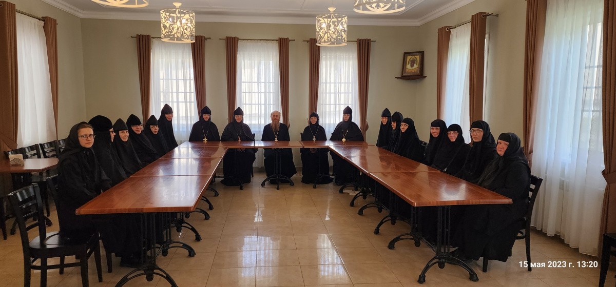 После трапезы состоялась беседа наместника обители с насельницами монастырей, в ходе которой участники встречи обсудили вопросы, касающиеся духовной жизни обителей, поговорили о непреходящем значении монашеского подвига, поделились опытом.