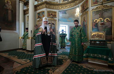 По окончании Литургии Святейший Владыка совершил славление и молитву у ковчега с частицей честных мощей святого благоверного князя Даниила.
