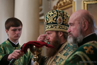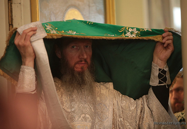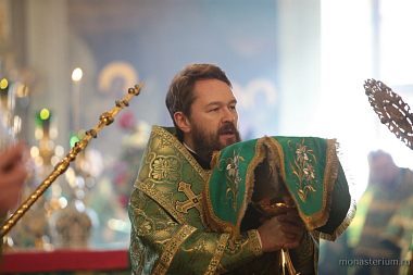 Проповедь перед Причастием произнес насельник Данилова монастыря игумен Иона (Займовский).