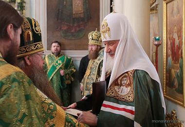 За Литургией Святейший Патриарх Кирилл рукоположил иеродиакона Нила (Петухова), насельника Данилова монастыря, в сан иеромонаха.