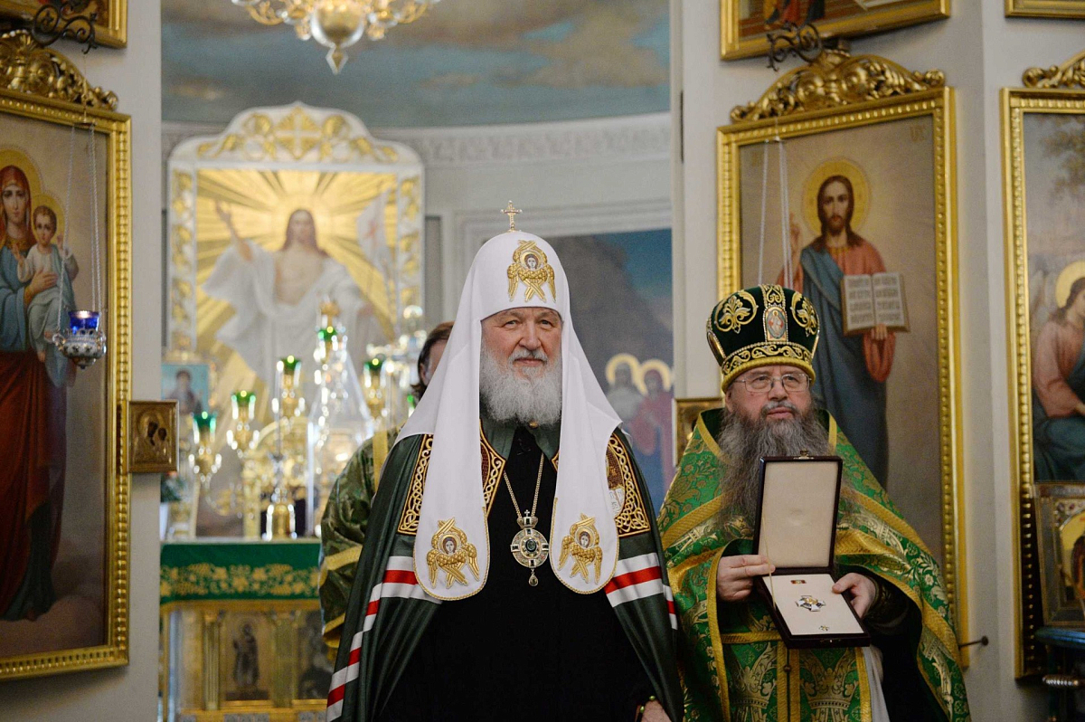После сугубой ектении Предстоятель Русской Церкви вознес молитву о мире на Украине.