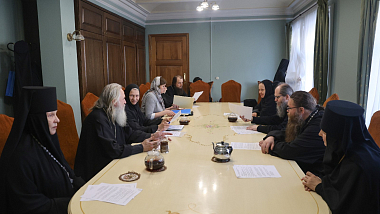 В тот же день состоялось Заседание рабочей группы Коллегии Синодального отдела по монастырям и монашеству. В заседании, которое возглавил председатель Синодального отдела по монастырям и монашеству митрополит Каширский Феогност, приняли участие: заместитель председателя Синодального отдела по монастырям и монашеству архимандрит Стефан (Тараканов); заместитель председателя Синодального отдела по монастырям и монашеству настоятельница Зачатьевского ставропигиального женского монастыря игумения Иулиания (Каледа); члены Коллегии СОММ – наместник Сретенского ставропигиального мужского монастыря игумен Иоанн (Лудищев), председатель Межведомственной комиссии по вопросам образования монашествующих игумен Петр (Еремеев), настоятельница Богородице-Рождественского ставропигиального женского монастыря игумения Викторина (Перминова); настоятельница ставропигиального женского монастыря Марфо-Мариинской обители милосердия игумения Елисавета (Позднякова); настоятельница Никольского Шостьенского ставропигиального женского монастыря игумения Неонилла (Фролова); зав. канцелярией Синодального отдела по монастырям и монашеству Г.В. Филиппова.