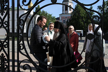 По окончании богослужения заместитель председателя Синодального отдела по монастырям и монашеству архимандрит Стефан (Тараканов) передал наместнику Даниловой обители поздравление с днем тезоименитства от Святейшего Патриарха Московского и всея Руси Кирилла.