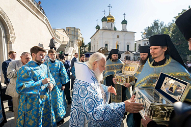 8- 21 сентября – Московская (городская) епархия ( 8-11 сентября – Сретенский ставропигиальный мужской монастырь; 11-13 сентября – Данилов ставропигиальный мужской монастырь; 14-17 сентября – Зачатьевский ставропигиальный женский монастырь; 17-19 сентября – храм прп. Евфросинии Московской – Патриаршее подворье в Котловке г. Москвы; 19-21 сентября – Донской ставропигиальный мужской монастырь);