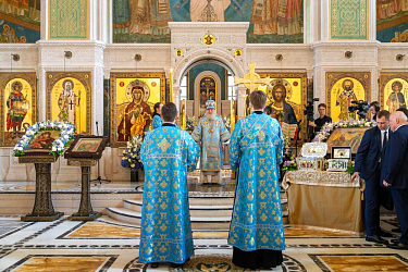 В храме Святейший Владыка поклонился честным мощам священномученика Илариона (Троицкого), архиепископа Верейского.